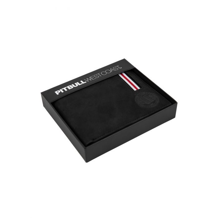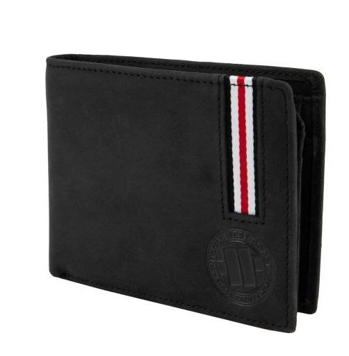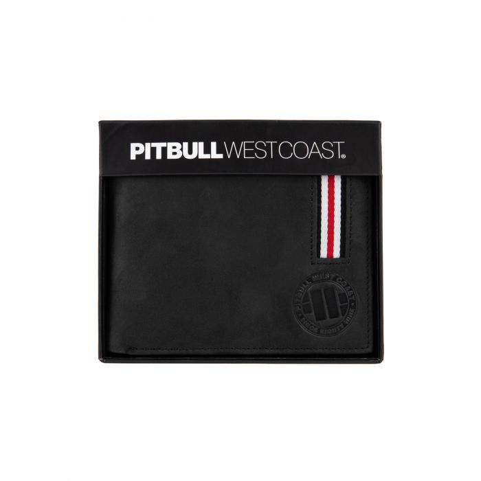 - Zapinana na metalowy zamek kieszeń na monety ze skórzaną zakładką i tłoczeniem PIT BULL West Coast