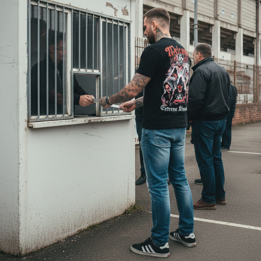T-shirt posiada klasyczny krój z okrągłym dekoltem, a dzięki oszczędnej formie idealnie sprawdzi się jako element codziennej, streetwearowej stylizacji dla osób identyfikujących się z kulturą kibicowską.