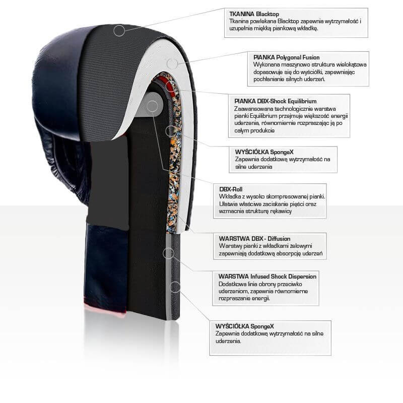 Rękawice zostały wypełnione specjalną odmianą pianki zapewniającej doskonałą amortyzację uderzeń oraz odporność na zbijanie się.