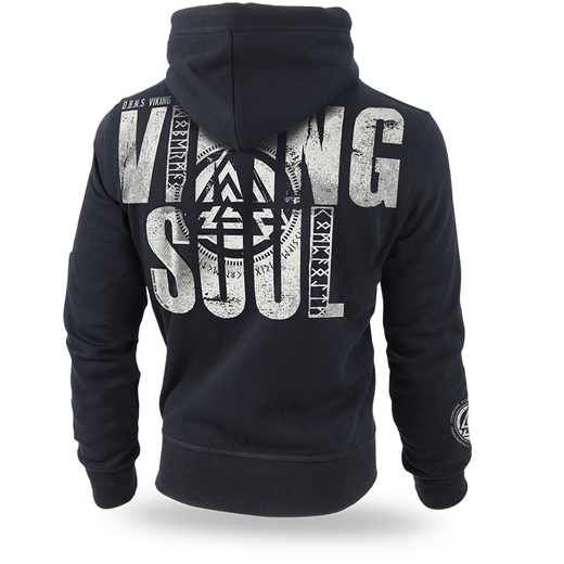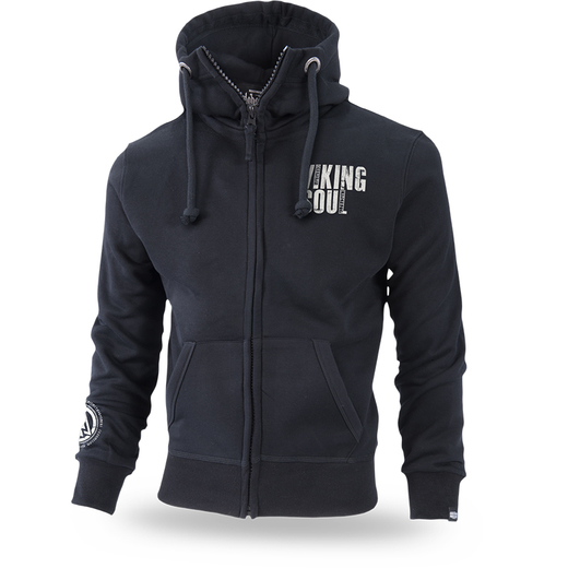 Wykonana z bawełny bluza męska. Model posiada dwie duże kieszenie oraz zamek na froncie. Wysoki kołnierz przechodzi w kaptur który reguluje się sznurkami. Dół wykończony szerokim ściągaczem. Dół prawego rękawa został ozdobiony nadrukiem koła z symbolami runicznymi. Na plecach znajduje się duży nadruk z napisem Viking Soul. Z napisu zostały wycięte kształty nawiązujące do mitologii nordyckiej. Na lewej piersi mniejszy nadruk z nazwą modelu. Nadruki z efektem podniszczenia.