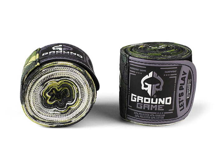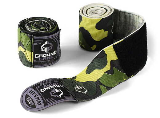 Bandaże bokserskie "Moro" zadrukowane wzorem moro/kamo w kolorze zielonym.