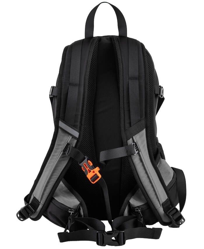 - mniejsza kieszeń na zamek z przodu oraz wentylowane kieszenie boczne z siatki