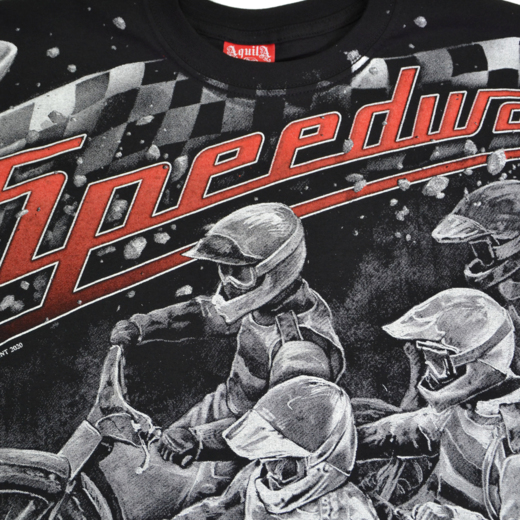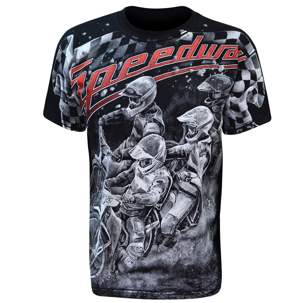 Wyjątkowa koszulka z motywem żużlowym. Wykonana przez polskiego producenta odzieży - Fightershop. Podczas projektowania oraz wykonania koszulki zadbano o jej najdrobniejsze detale. Nadruk na koszulce wykonany został przy pomocy sitodruku. Jest bardzo trwały i nie ulega zniszczeniu podczas użytkowania. Produkt należy prać w temperaturze nie przekraczającej 40 stopni, pozwoli to zdecydowanie dłużej zachować trałość nadruku.