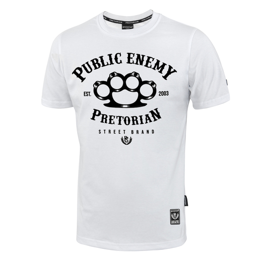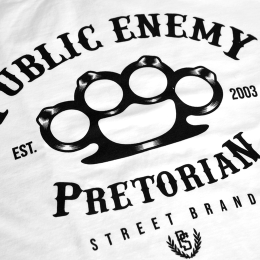 Jeden z mocniejszych wzorów w klimacie ulicznym z najnowszej kolekcji Pretorian z hasłem Public Enemy i motywem kastetu widocznym na froncie i karku koszulki. Odzież marki Pretorian cechuje najwyższa jakość wykonania oraz dbałość o najdrobniejsze szczegóły i detale. Produkt w pełni wyprodukowany w Polsce.