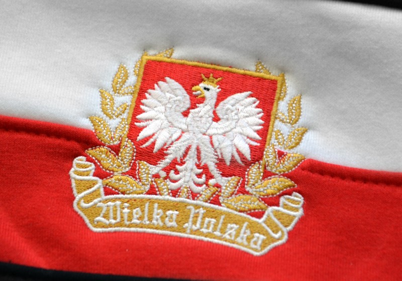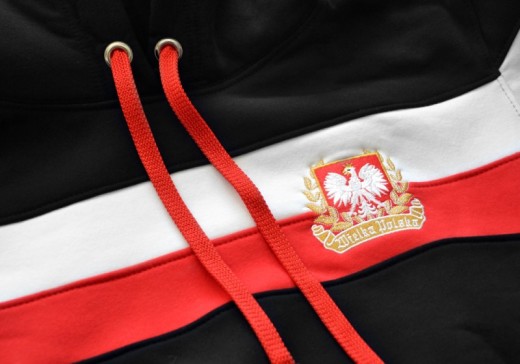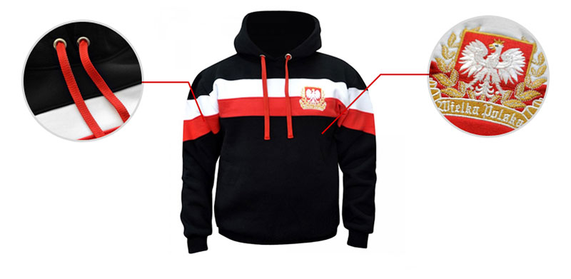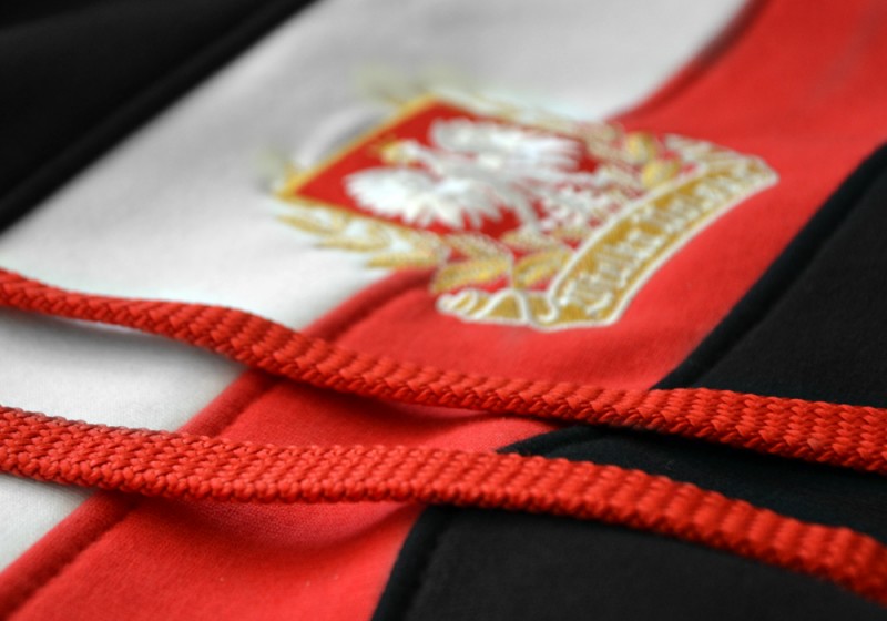Bluza posiada wszytą flagę Polski na wysokości klatki piersiowej oraz ramion.
