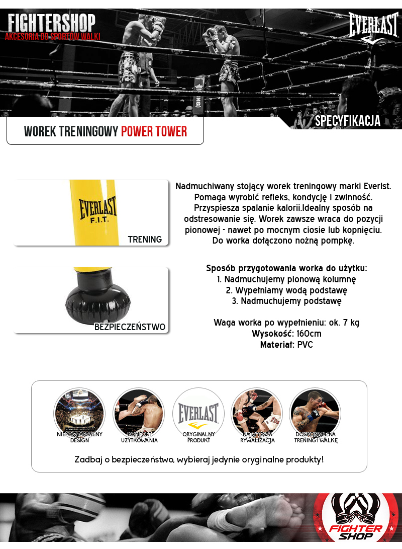 Strona główna / Sprzęt sporty walki / Worki bokserskie / Bez wypełnienia / Everlast worek treningowy dmuchany Power Tower