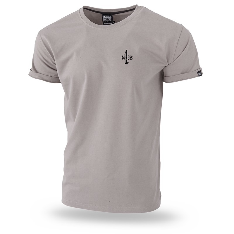 T-shirt męski 100% bawełny. Na plecach kolorowa grafika z efektem przetarcia, zajmująca niemal całą powierzchnię produktu. W centrum wzoru trzy duże czaszki w hełmach z krzyżami maltańskimi, poniżej dwa sztylety. Powyżej i poniżej wyraziste banery z gotyckim hasłem Nation Rebell. Dodano mniejszy baner z oznaczeniem DBNS-EST. 1969 oraz dwie niewielki karty. Na froncie logotyp z symbolem 44. Koszulka z krótkim rękawem oraz elastycznym ściągaczem przy szyi