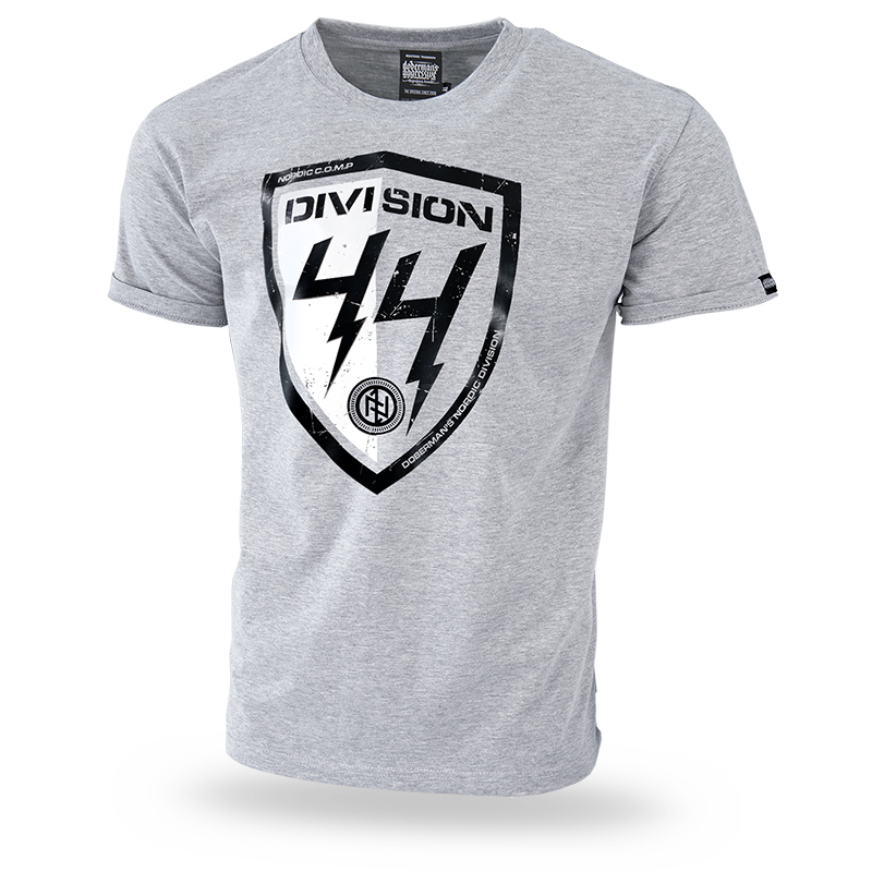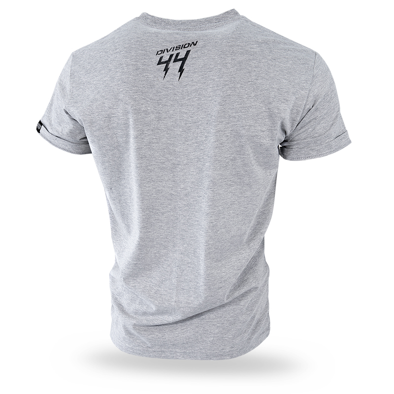 Męska koszulka z nadrukiem w standardowym fasonie. Koszulka wykonana z wysokogatunkowej bawełny o gramaturze 200g. Centralnie na piersi znajduje się duży znak tarczy, a w środku napis DIVISION 44. Cyfry ku dołowi przechodzą w błyskawice. Pomiędzy dwoma czwórkami widnieje logo Offensive. Na plecach mniejszy logotyp z piorunującymi cyframi. Bardzo trwały nadruk.