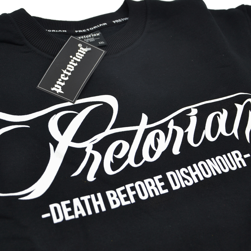 Reedycja legendarnego i popularnego wzoru z motywem przewodnim marki "Death Before Dishonour". Klasyczna czarna bluza marki Pretorian z estetycznym i dopracowanym nadrukiem. Klasyka i elegancja w czystej postaci. Bluzę marki Pretorian cechuje najwyższa jakość wykonania oraz dbałość o najdrobniejsze szczegóły i detale. Produkt w pełni wyprodukowany w Polsce.