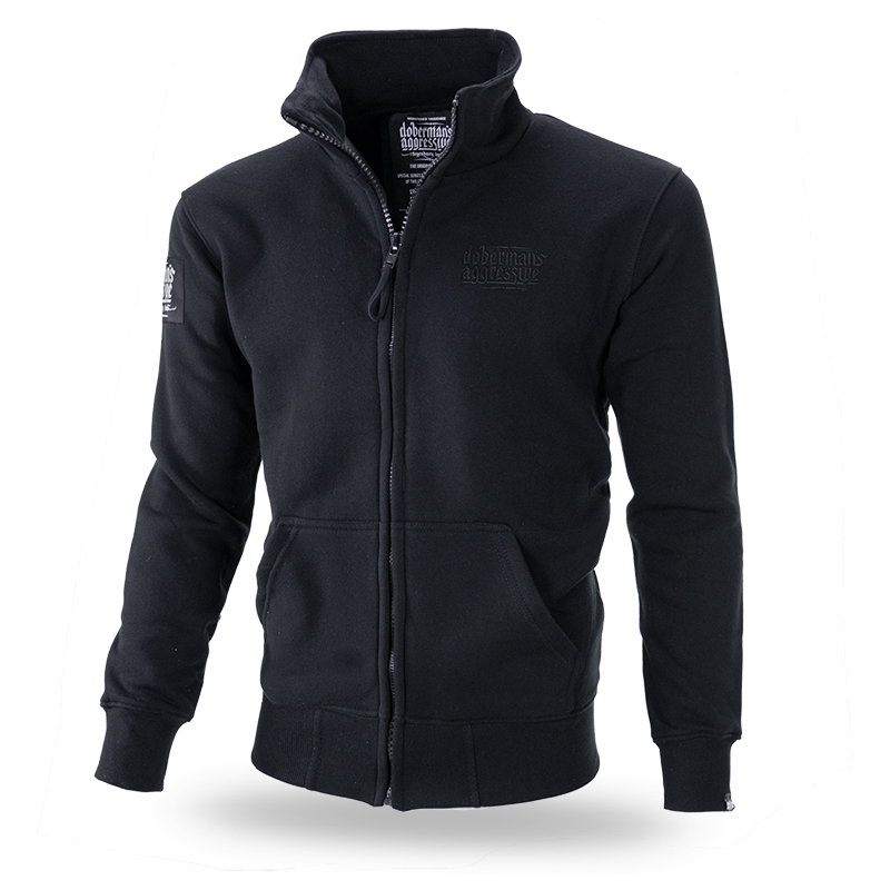 Klasyczna bluza z zamkiem oraz dwoma kieszeniami na froncie. Dół i rękawy wykończone ściągaczem. Wewnątrz znajduje się duża metka z logo Dobermans Aggressive. Odzież wykonana z bawełny wysokiej jakości. Na lewym rękawie wszyta metka z logo marki. Plecy bluzy pokrywa duży nadruk w postaci logo, wykonany metodą pozwalającą uzyskać efekt 3D. Dzięki temu bluza wygląda bardzo efektownie. Przód gładki, na prawym ramieniu naszywka z logo Doberman’s Aggressive.