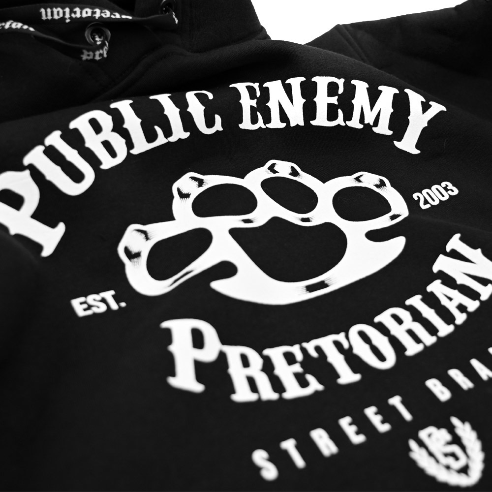 Jeden z mocniejszych wzorów w klimacie ulicznym z najnowszej kolekcji Pretorian z hasłem Public Enemy i motywem kastetu widocznym z przodu i karku. Bluza wykonana z wysokogatunkowej grubej bawełny. Odzież marki Pretorian cechuje najwyższa jakość wykonania oraz dbałość o najdrobniejsze szczegóły i detale. Produkt w pełni wyprodukowany w Polsce.