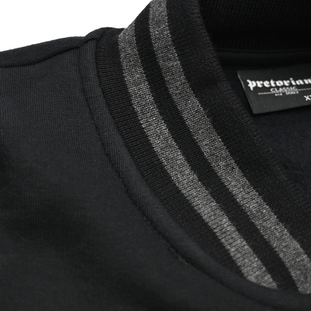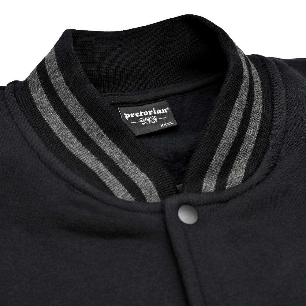 Bluza rozpinana typu bejsbolówka z kolekcji "Classic" marki Pretorian. Jest wykonana z wysokogatunkowej grubej bawełny. Z przodu bluzy znajduje się dyskretny nadruk, oraz boczne kieszenie. Z tyłu bluza posiada niewidli haft komputerowy pod karkiem. Odzież marki Pretorian cechuje najwyższa jakość wykonania oraz dbałość o najdrobniejsze szczegóły i detale. Produkt w pełni wyprodukowany w Polsce.