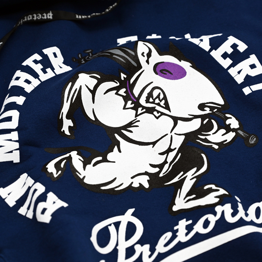 Run montherf*:)ker! Kultowa bluza marki Pretorian powróciła. Reedycja legendarnego i popularnego wzoru z motywem Bulteriera w wersji z kapturem. Odzież marki Pretorian cechuje najwyższa jakość wykonania oraz dbałość o najdrobniejsze szczegóły i detale. Bluza wykonana z wysokogatunkowej grubej bawełny. Produkt w pełni wyprodukowany w Polsce.