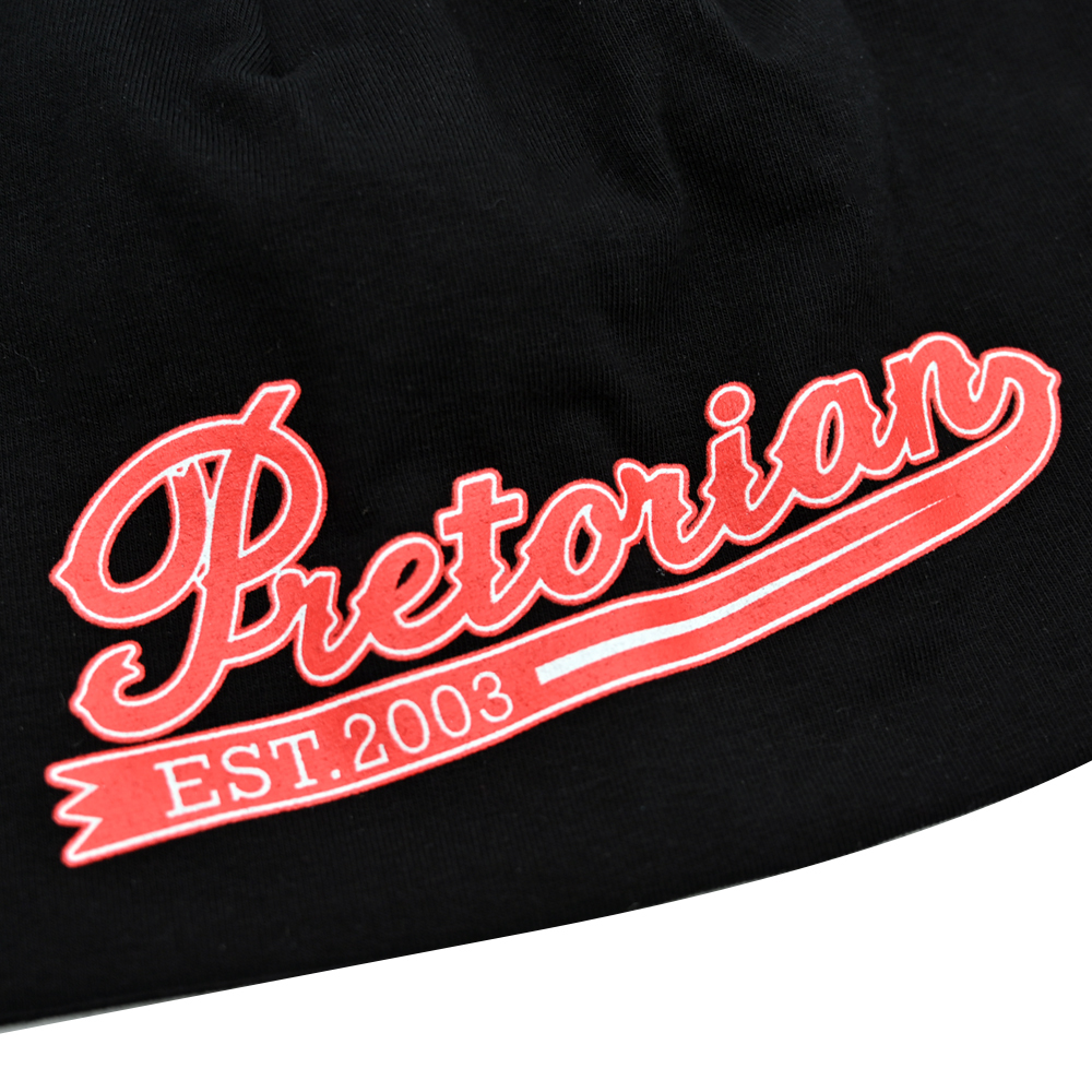 Czapka marki Pretorian, wykonana z dzianiny bawełnianej posiadającej Certyfikat OEKO-TEX®, gwarantującego najwyższą jakość użytych materiałów. Dzianina z której jest uszyta zapewnia doskonały komfort cieplny, a dzięki swojemu krojowi i wykonaniu, oraz użyciu płaskich szwów, czapka idealnie dopasowuje się do głowy. Ta metoda łączenia materiału dodatkowo sprawia, że czapka nie powoduje otarć, gdyż nie posiada dodatkowych zgrubień w miejscu szycia, gwarantuje najwyższy komfort noszenia, lepiej prezentuje się wizualnie i zapewnia wysoką trwałość.