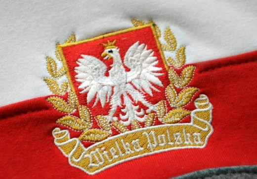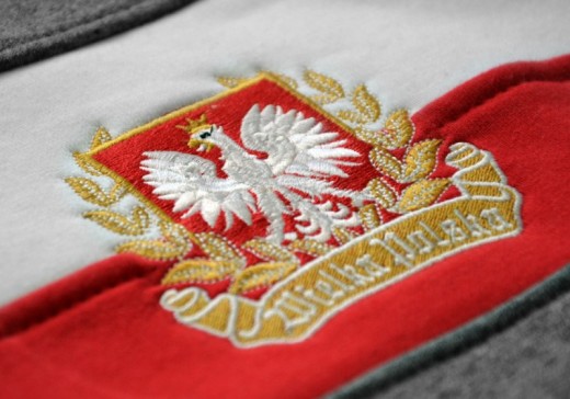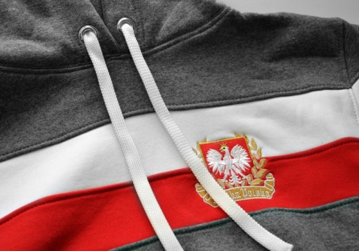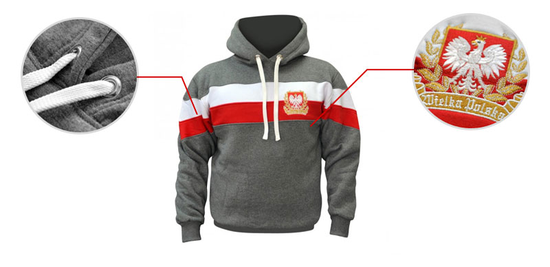 Bluza posiada wszytą flagę Polski na wysokości klatki piersiowej oraz ramion.