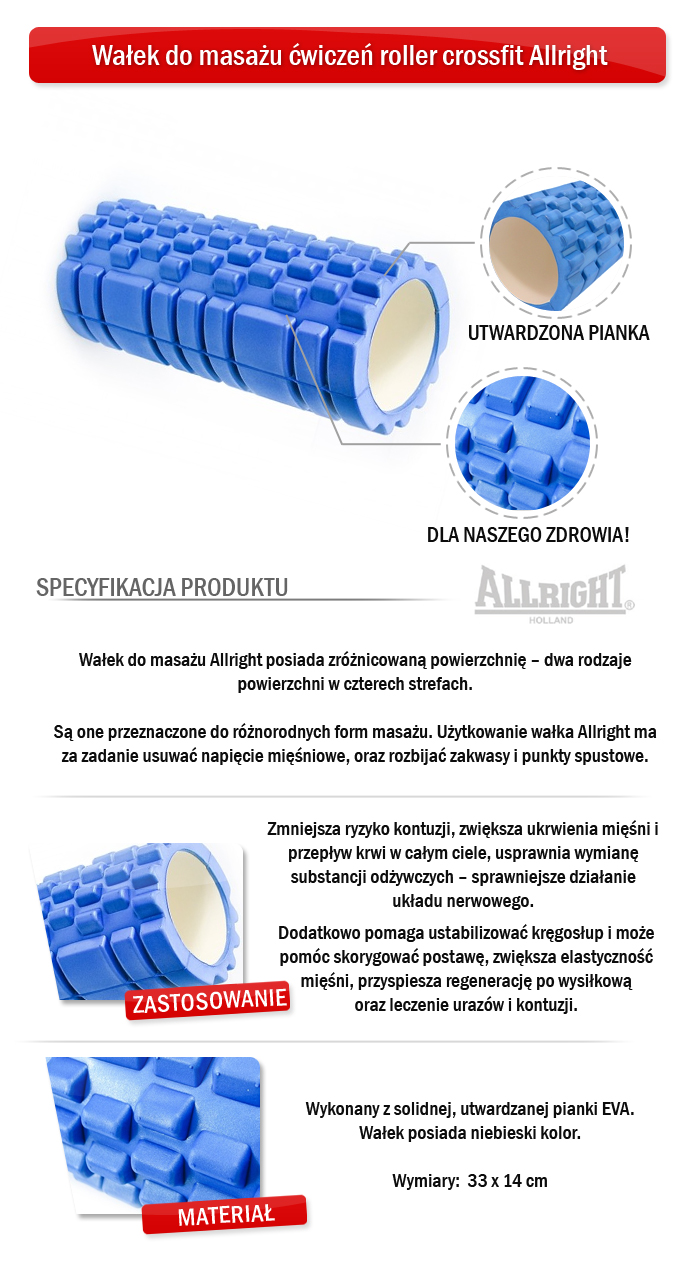 Wałek do masażu ćwiczeń roller crossfit Allright 33cm