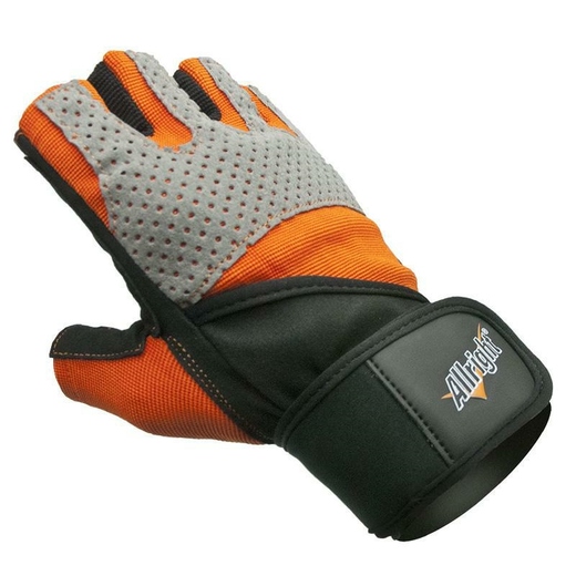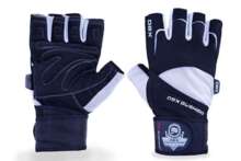 Rękawiczki kulturystyczne z paskiem usztywniającym nadgarstek. Elastyczny nylon między palcami ściśle je oplata i zapewnia dobrą wentylację.