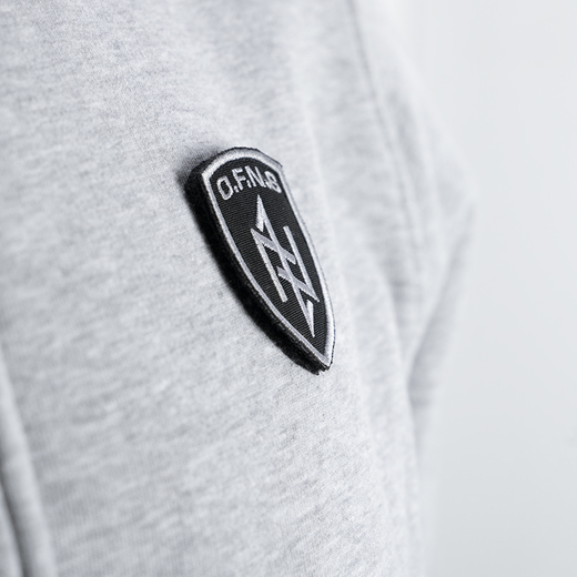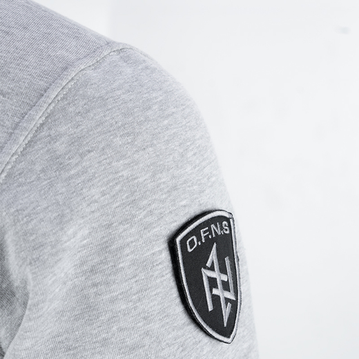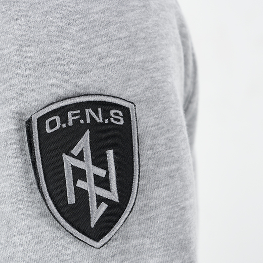 Bluza classic z zamkiem oraz stójką. Wykonana z wysokiej jakości bawełny, zakończona ściągaczami, z dwoma kieszeniami z przodu. Na lewym rękawie mała metka z logo marki. Model O.F.N.S. Shield z dużą naszywaną tarczą na ramieniu oraz mniejszą na piersi.