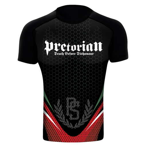 Pretorian Fightwear! Wysokiej jakości rashguard marki Pretorian. Idealna pozycja dla miłośników sportów walki. Rashguard z krótkim rękawem idealnie sprawdzi się podczas walki w stójce oraz walce wielopłaszczyznowej.