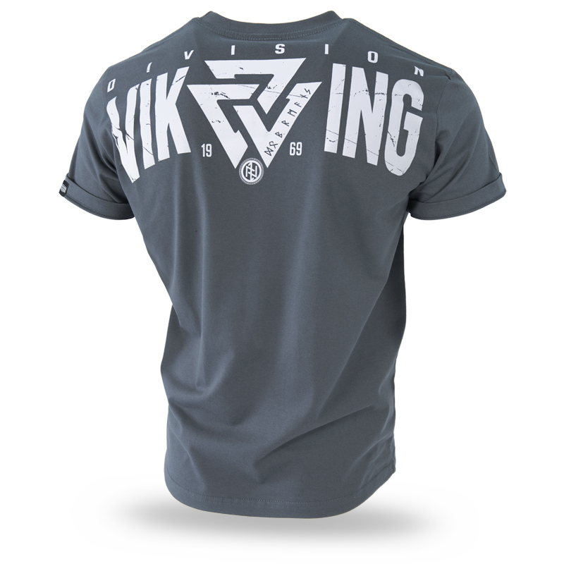 Męska koszulka o klasycznym kroju z krótkim rękawkiem. Wykonana z wysokiej jakości bawełny o gramaturze 200g. Na lewym rękawku mała metka z logo Doberman’s Aggressive. Koszulka z serii Valknut inspirowanej nordycką symboliką. Plecy ozdobione dużym wykonanym metodą wysokiej jakości nadrukiem Viking Division wraz z logo marki. Na piersi po lewej stronie haftowany symbol Valknut.
