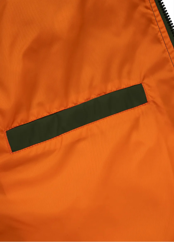 - Podszycie ocieplaną pikowaną poliestrową podszewką w kolorze pomarańczowym