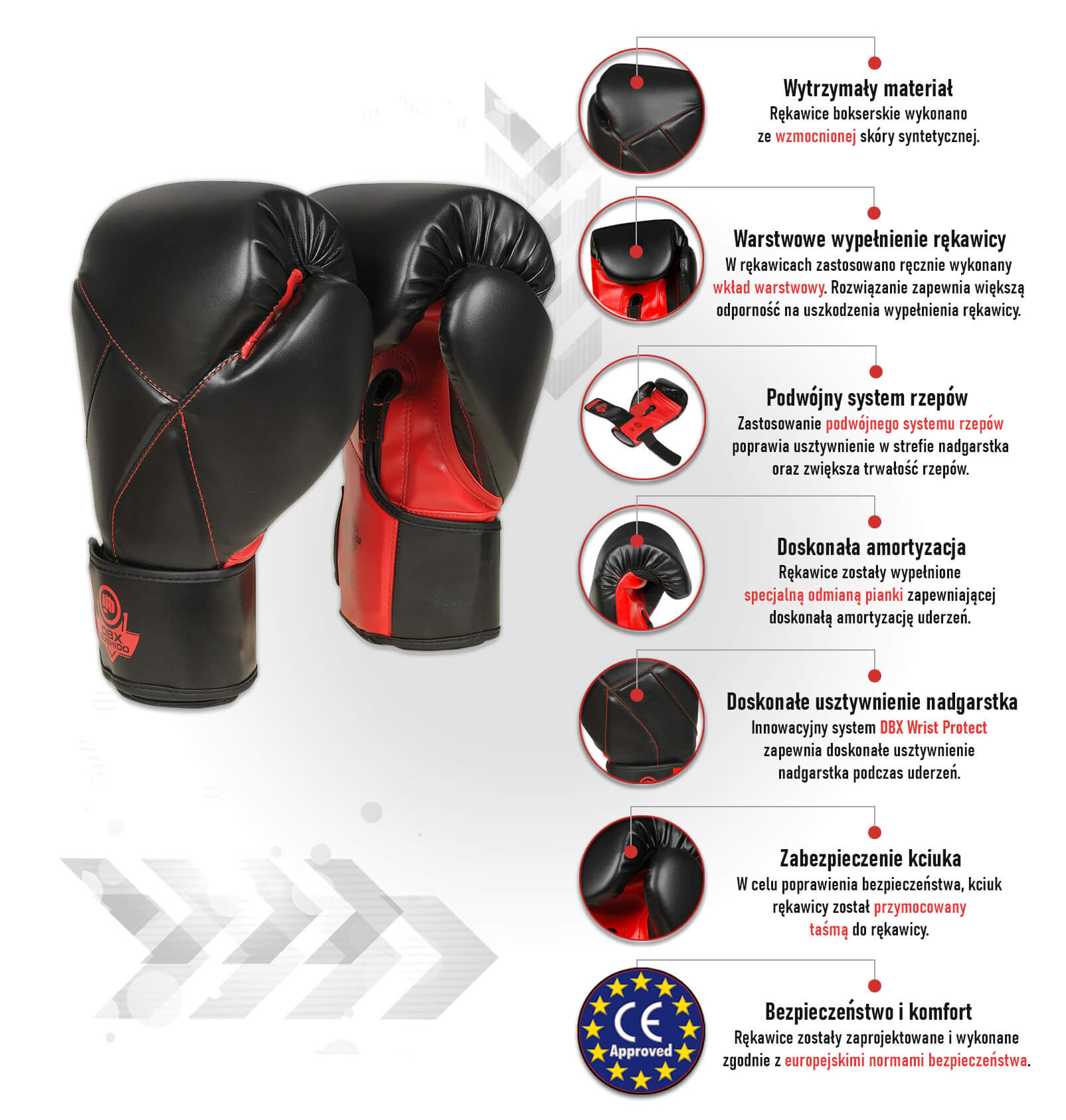 Parametry techniczne rękawic bokserskich B-2v15: