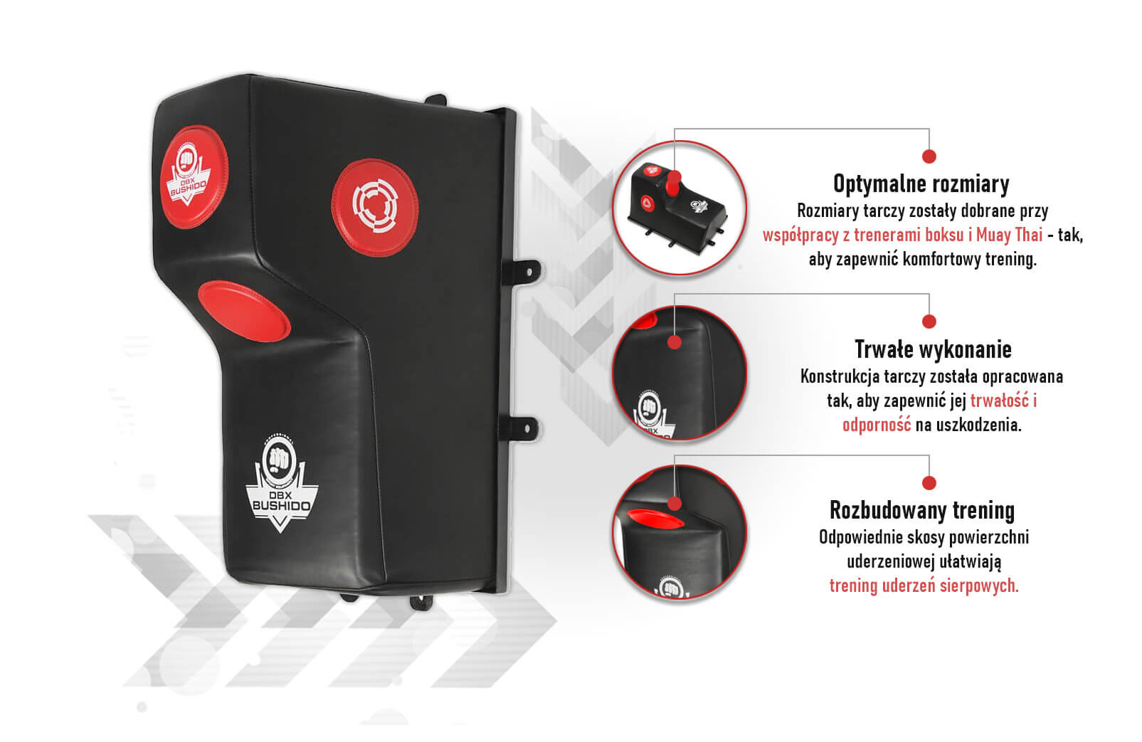 Rozmiary tarczy zostały dobrane przy współpracy z trenerami boksu i Muay Thai tak aby zapewnić komfortowy trening różnych technik ręcznych oraz nożnych.