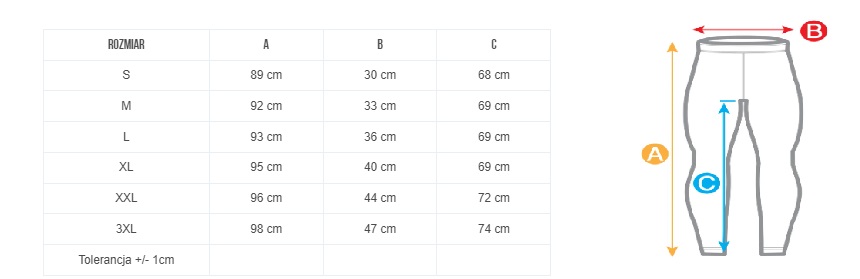 - Tkanina z systemem 4-way stretch dzięki czemu rozciąga się w każdym kierunku nie krepując ruchów