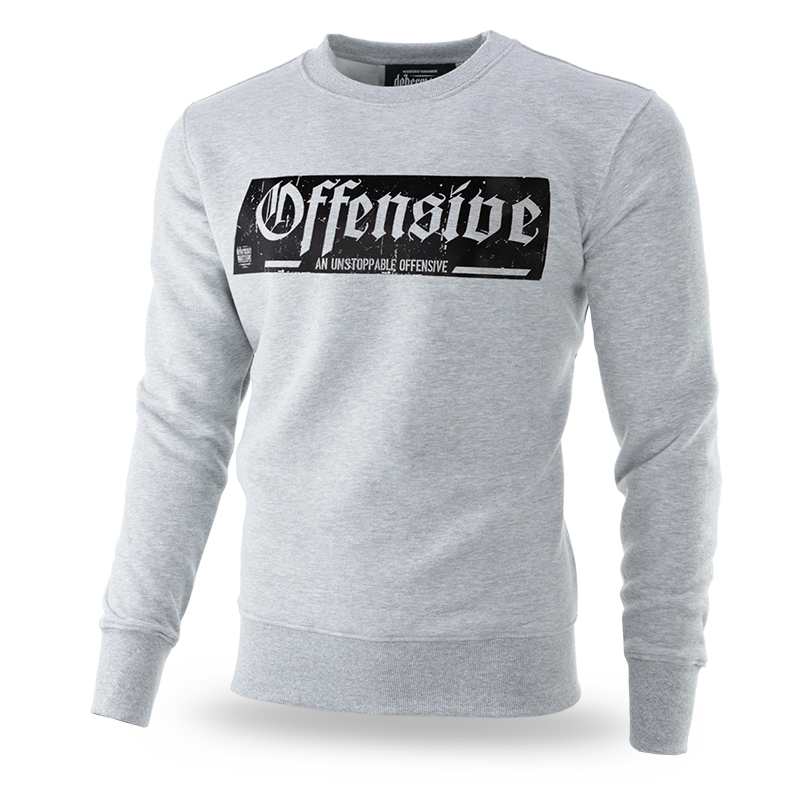 Męska klasyczna bluza zakładana przez głowę. Wykonana z wysokiej jakości bawełny. Na rękawie mała metka z logo marki, doskonale odzwierciedlająca przemyślany design w najmniejszym szczególe. Dół bluzy oraz rękawy wykończone są szerokim ściągaczem. Bluza z serii Pride, ozdobiona na piersi prostą grafiką z dopiskiem Offensive An Unstoppable Offensive