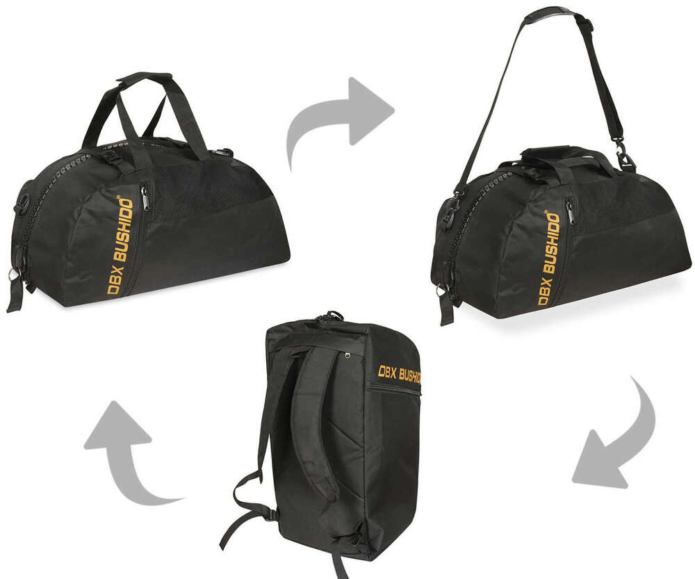 Torbę treningową DBX-SB-20 możesz szybko i łatwo przerobić z tradycyjnej torby na torbę naramienną lub na plecak. Zmiana funkcjonalności jest bardzo łatwa i szybka w realizacji.