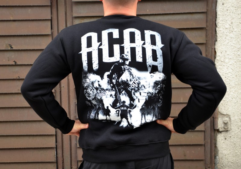 Bluza Acab wykonana przez polskiego producenta odzieży dla kibiców - Extreme Adrenaline. Podczas projektowania oraz wykonania produktu zadbano o najdrobniejsze detale. Nadruk na kbluzie wykonany został przy pomocy sitodruku. Jest bardzo trwały i nie ulega zniszczeniu podczas użytkowania. Produkt należy prać w temperaturze nie przekraczającej 40 stopni, pozwoli to zdecydowanie dłużej zachować trałość nadruku. Rękawy oraz dół bluzy zakończone zostały ściągaczami koloru czarnego. Bluza od podstaw uszyta została w Polsce.