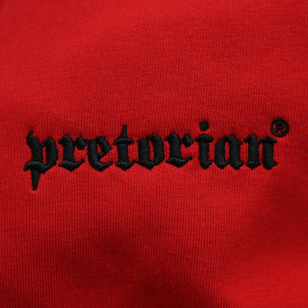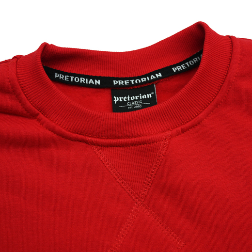 Klasyczna bluza z kolekcji "Classic" marki Pretorian w kolorze czerwonym. Wykonana z wysokogatunkowej grubej bawełny. Na przodzie bluzy znajduje się dyskretny haft, naszywka tkana. Odzież marki Pretorian cechuje najwyższa jakość wykonania oraz dbałość o najdrobniejsze szczegóły i detale.