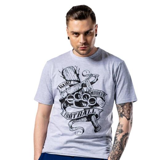 Charakterystyczna grafika Kastet "against modern football" nadaje tej koszulce sportowego wyglądu, która jest wykonana z miękkiej bawełny.