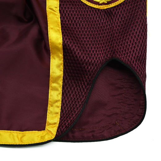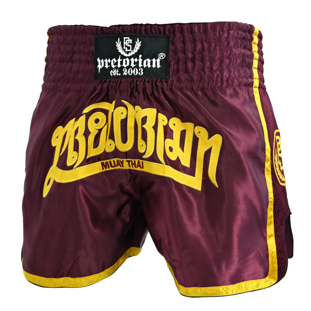 Spodenki posiadają luźny krój oraz dodatkowe rozcięcia na bokach nogawek, zapewniając dzięku temu komfort przy wysokich kopnięciach. Szeroki, elastyczny pas, który doskonale trzyma spodenki na miejscu i nie pozwala im się przemieszczać. Na środku przyozdobiony został naszywką z wizerunkiem logo marki Pretorian oraz dużą aplikacją - Pretorian Muay Thai. Spodenki są bardzo lekkie - wykonane z lekkiego i elastycznego poliestru.