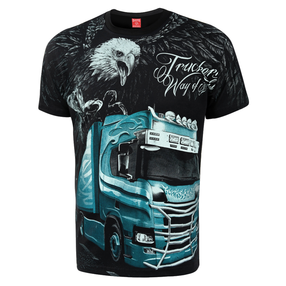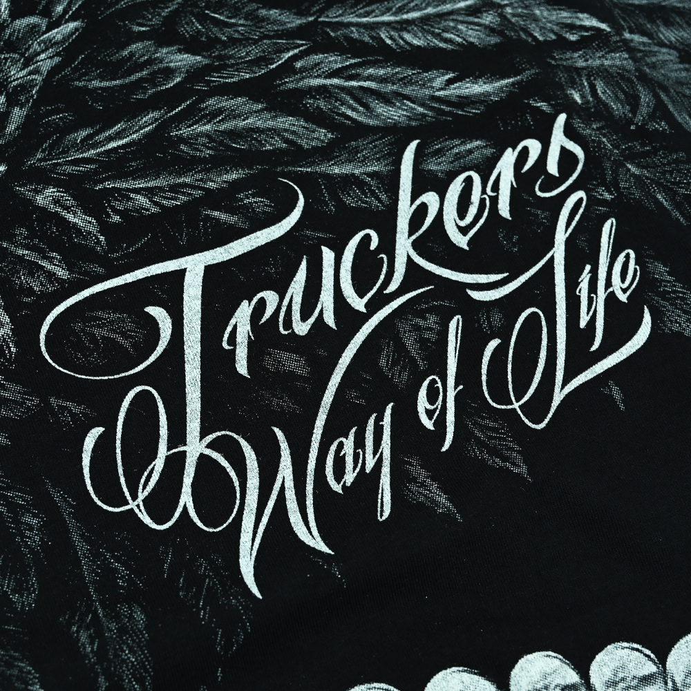 Wyjątkowa koszulka w kolorze czarnym dla wszystkich miłośników samochodów ciężarowych z motywem Trucker - way of life. Wykonana przez polskiego producenta odzieży z wysokogatunkowej bawełny. Podczas projektowania oraz wykonania koszulki zadbano o jej najdrobniejsze detale. Nadruk na koszulce wykonany został przy pomocy sitodruku. Jest bardzo trwały i nie ulega zniszczeniu podczas użytkowania.