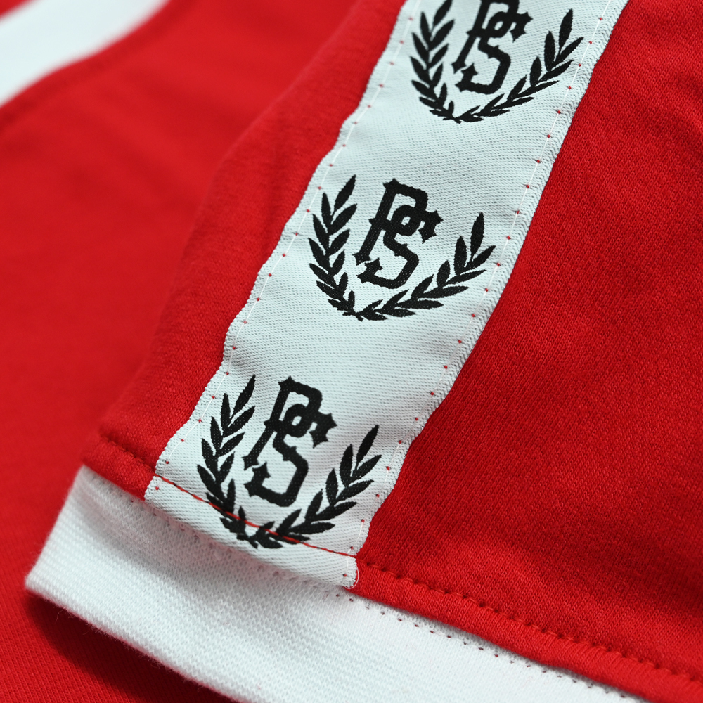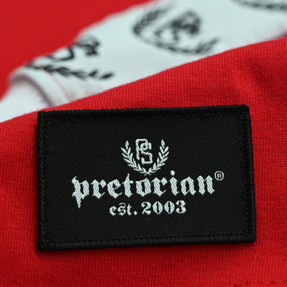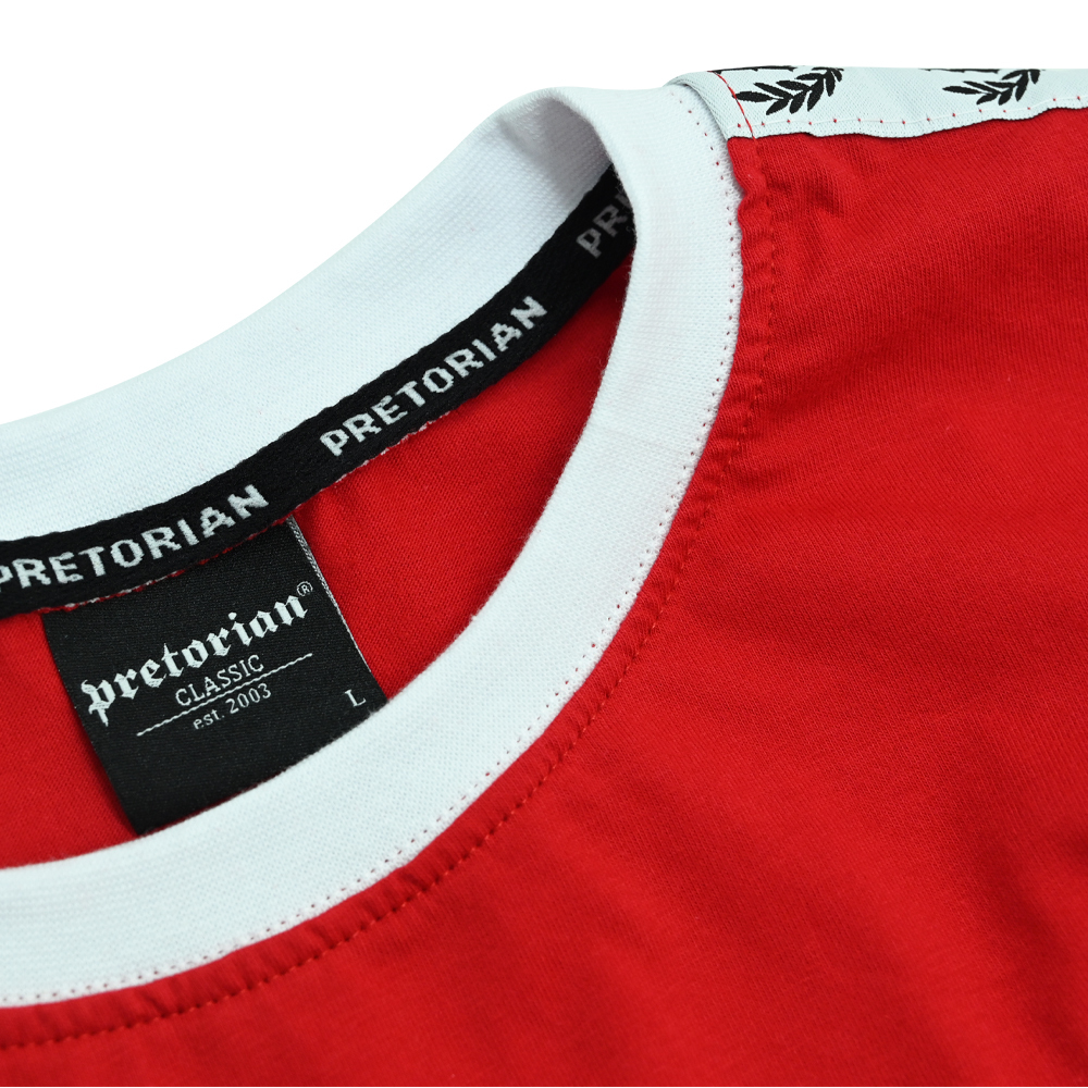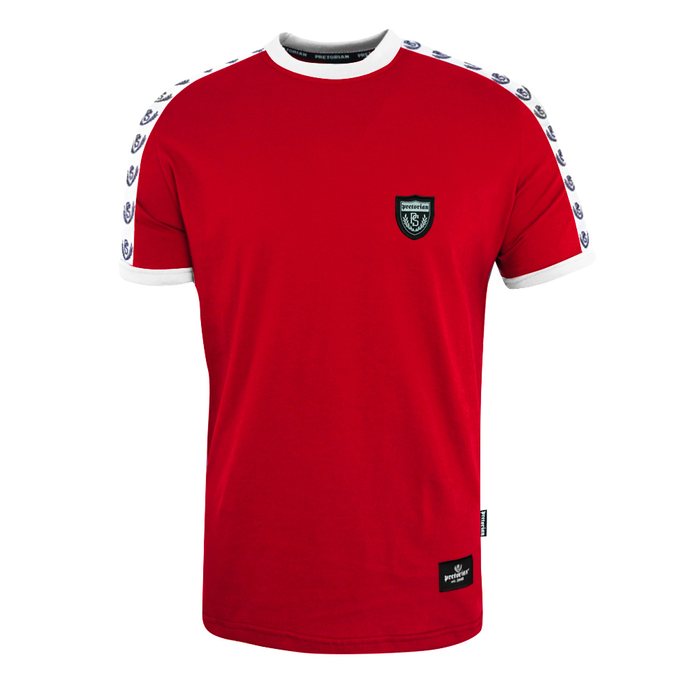 Koszulka marki Pretorian z lampasami na rękawach. Wykonana w kolorze czerwonym. Na piersi posiada niewielką materiałową naszywkę z wizerunkiem loga marki Pretorian. Produkt cechuje najwyższa jakość wykonania oraz dbałość o najdrobniejsze szczegóły i detale.