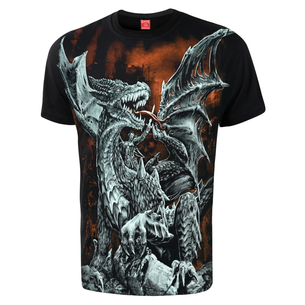 Wyjątkowa koszulka koloru czarnego z dużych rozmiarów nadrukiem z motywem fantasy. Wykonana przez polskiego producenta odzieży - Fightershop. Podczas projektowania oraz wykonania koszulki zadbano o jej najdrobniejsze detale. Nadruk na koszulce wykonany został przy pomocy sitodruku. Jest bardzo trwały i nie ulega zniszczeniu podczas użytkowania. Produkt należy prać w temperaturze nie przekraczającej 40 stopni, pozwoli to zdecydowanie dłużej zachować trałość nadruku.