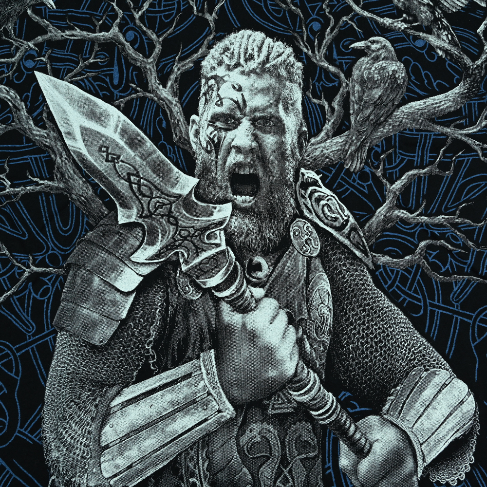 Koszulka nordycka z motywem Vikingów wykonana przez polskiego producenta odzieży - Aquila. Podczas projektowania oraz wykonania koszulki zadbano o jej najdrobniejsze detale. Nadruk na koszulce wykonany został przy pomocy sitodruku. Jest bardzo trwały i nie ulega zniszczeniu podczas użytkowania. Produkt należy prać w temperaturze nie przekraczającej 40 stopni, pozwoli to zdecydowanie dłużej zachować trałość nadruku.