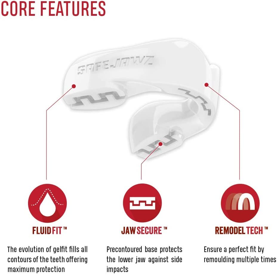 Konstrukcje ochraniaczy szczęk Safe Jawz i materiały z których są wykonane umożliwiają użytkownikowi bardzo dokładne dopasowanie ochraniaczy do uzębienia w czasie krótszym niż 10 minut, a także umożliwiają wielokrotną korektę dopasowania , nieporównywalną do zwykłych ochraniaczy szczęk ich ochronę a przy tym są bardzo efektowne wizualnie.