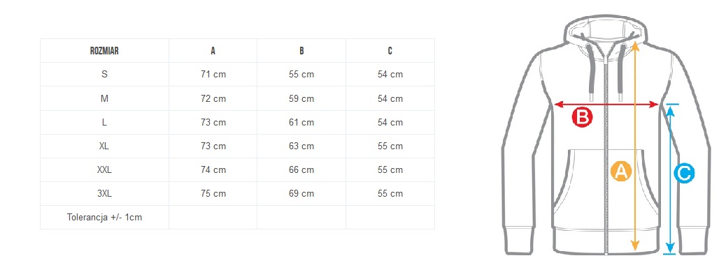 - szerokie żebrowane mocne ściągacze na rękawach oraz u dołu bluzy