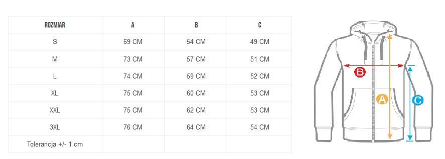 - szerokie żebrowane mocne ściągacze na rękawach oraz u dołu bluzy