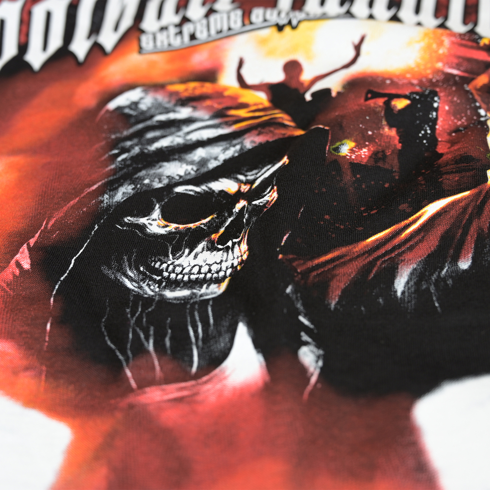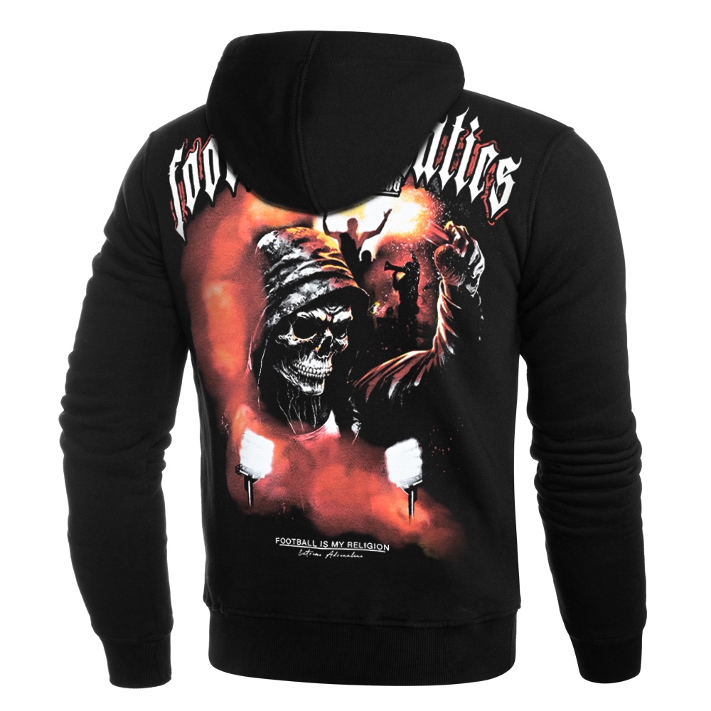 Bluza wykonana przez polskiego producenta odzieży dla kibiców - Extreme Adrenaline. Podczas projektowania oraz wykonania produktu zadbano o najdrobniejsze detale. Nadruk na kbluzie wykonany został przy pomocy sitodruku. Jest bardzo trwały i nie ulega zniszczeniu podczas użytkowania. Produkt należy prać w temperaturze nie przekraczającej 40 stopni, pozwoli to zdecydowanie dłużej zachować trałość nadruku. Rękawy oraz dół bluzy zakończone zostały ściągaczami koloru czarnego.