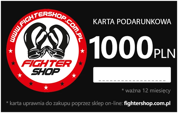 Karta Podarunkowa jest wirtualną kartą typu pre-paid, stanowiącą odpowiednik gotówki, wystawianą na okaziciela, umożliwiającą dokonywanie zakupu towarów w sklepie internetowym www.fightershop.com.pl .