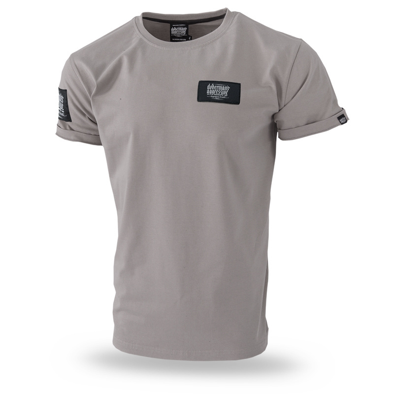 Męska koszulka w standardowym fasonie, wykonana z wysokiej jakości bawełny. Na lewej piersi czarna naszywka Doberman’s Aggressive. Na rękawku wszyta niewielka metka z logo marki, na prawym rękawie czarny emblemat z logiem Doberman’s Aggressive.