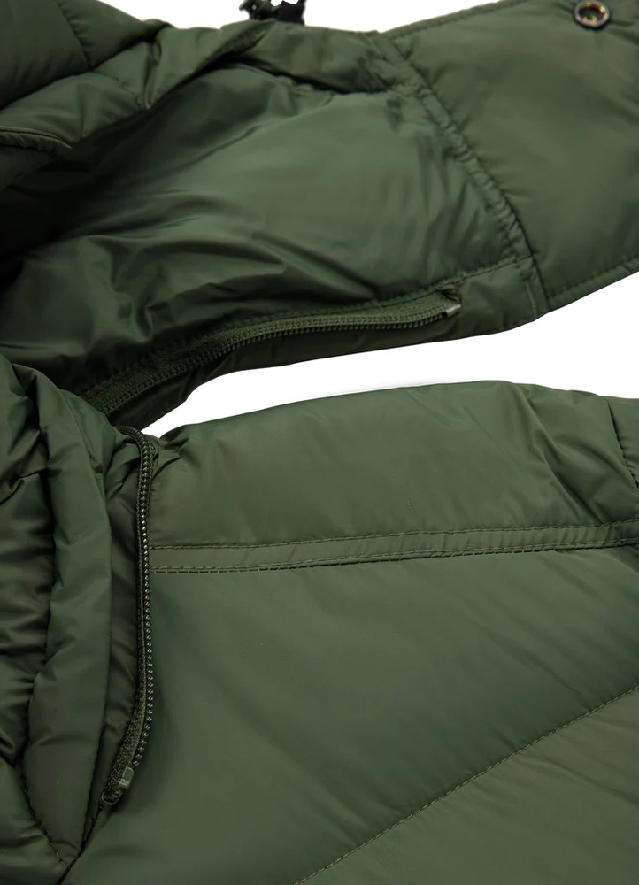 - pikowana i wykonana z wysokiej jakości nylonowej tkaniny odpornej na wiatr, deszcz i śnieg