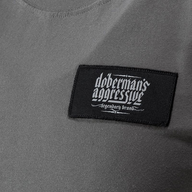 Męska koszulka w standardowym fasonie, wykonana z wysokiej jakości bawełny. Na lewej piersi czarna naszywka Doberman’s Aggressive. Na rękawku wszyta niewielka metka z logo marki, na prawym rękawie czarny emblemat z logiem Doberman’s Aggressive.