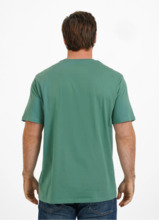 Męska koszulka w standardowym fasonie. Wykonana z wysokiej jakości bawełny. Na lewym rękawie wszyta mała metka z logo marki. Na przodzie znajduje się grafika przedstawiająca szkielet człowieka z bronią wycelowaną ku górze oraz napis MEMENTO MORI WITHOUT FEAR YOU ARE FREE
