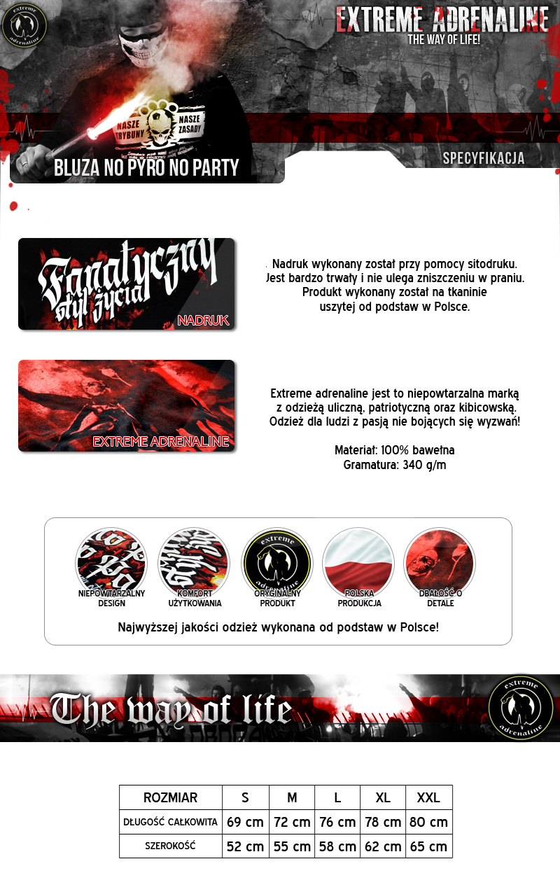 Bluza z kapturem Extreme Adrenaline "No Pyro No Party!"