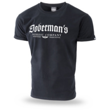 Odzież wykonana z bawełny o gramaturze 200g. Na lewym rękawku mała metka z logo Doberman’s Aggressive. Na przodzie koszulki znajduje się duży napis Dobermans wykonany czcionka gotycka. Wzór uzupełnia dodatkowy tekst poniżej, oraz symbole nordyckie.