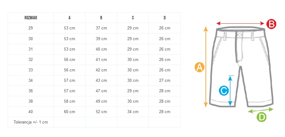 - spodenki zapinane na zamek i guzik